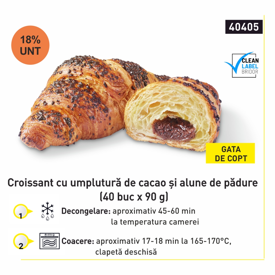 Bridor Croissant cu umplutură de cacao și alune de pădure 18% unt (40 buc x 90 g) 40405