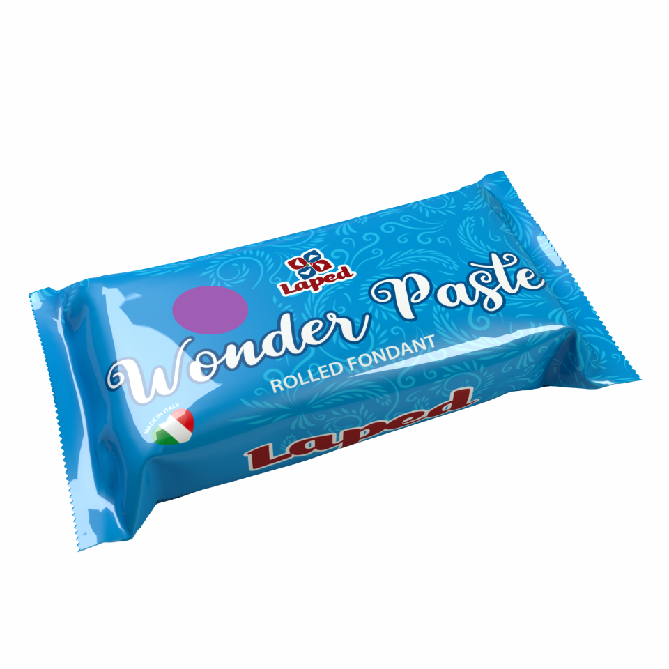 Pasta de zahar lila, obtinuta prin colorarea fara azot, cu o usoara aroma de vanilie. Perfecta pentru prajituri de nunta si ocazionale. Poate fi colorata cu coloranti alimentari. Plastica si elastica, se comporta bine atunci cand este refrigerata.