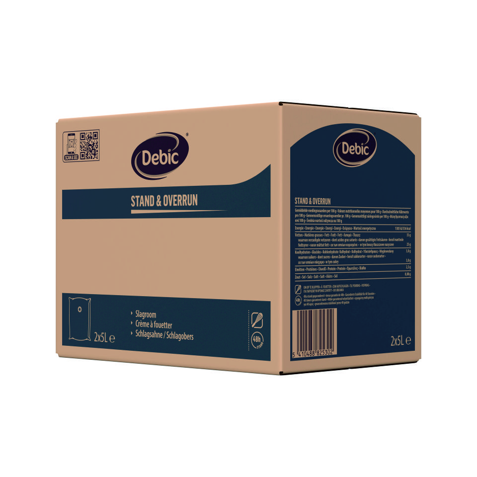 Smântână Debic Stand & Overrun este special dezvoltată pentru creațiile de patiserie și cofetărie. Perfectă pentru decorare, umpluturi și preparate de bavarois, mousse-uri și înghețate.